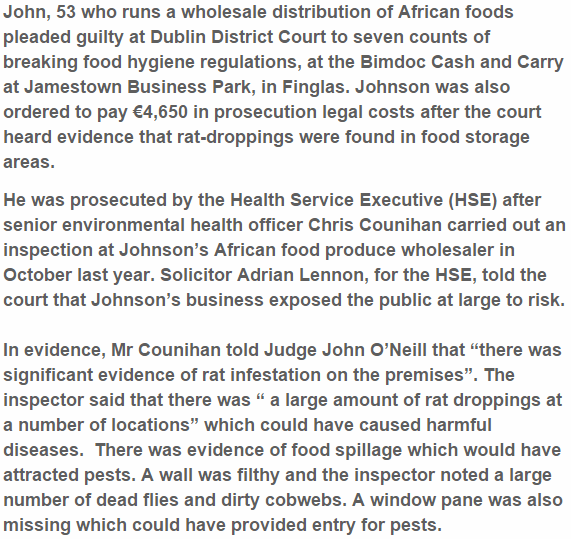 The immediate more youthful sibling of Ayo Fayose the Ekiti statE governor, Bimbo Fayose otherwise called John Johnson based DUBLIN Republic of Ireland has been fined €6,000 after a health review uncovered “proof of noteworthy rat infestation”.