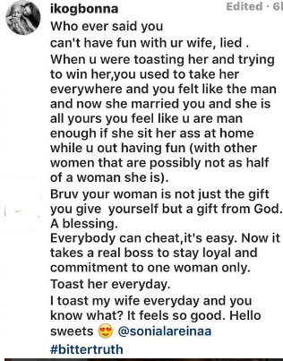 Everybody can cheat, it takes a real boss to stay loyal to one woman. I toast my wife everyday – IK Ogbonna