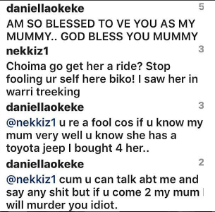 “I will murder you,” actress Daniella Okeke tells follower who advised her to get her mum a car.