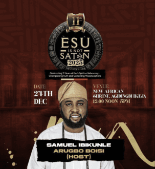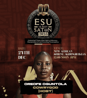 Meet your host for the ESU IS NOT SATAN FESTIVAL, Ibikunle Samuel aka ArugboBoisi. This award winning OAP, historian and media personality is well-versed in everything that has to do with Yoruba history and culture. ArugboBoisi will be lending his voice to our festivities and we can’t wait to begin.