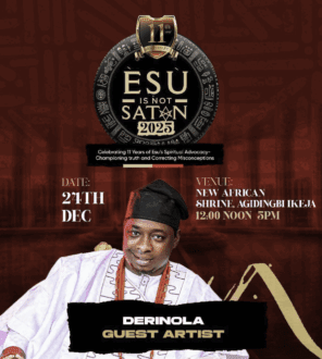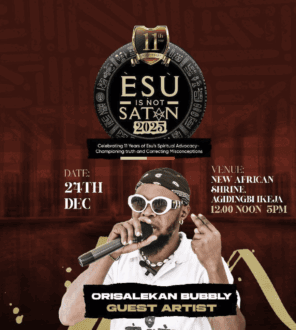 Our concert would be incomplete without the presence of the one and only Original Omo Esu, Orisalekan Bubbly. A powerful voice in reclaiming and celebrating the true essence of Esu with his music, Orisalekan will be a guest artist at the Esu is not Satan concert.