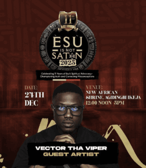 Get ready for an experience you won’t forget! @vectorthaviper will be gracing the Esu is not Satan festival with his presence!