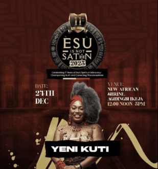 We are honoured that the legendary Yeni Kuti will be a special guest at the Esu is not Satan concert taking place this December 24, at the New Afrikan Shrine, Ikeja.