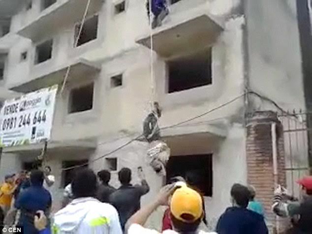 They tied him up and rained down punches on him as he dangled off the building’s side they were working on. He was then dropped agonizingly on his head before police touched base on the scene. The police took him into custody yet it is not known whether any of his assailants were captured.