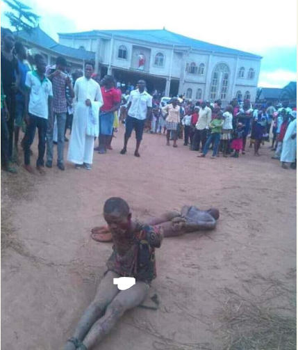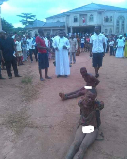 #JungleJustice: Thieves Who allegedly Stole Motorcycle In Church In Anambra Beaten By Mob (Photos)