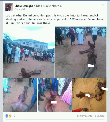 Home / News From Nigeria / Breaking News / #JungleJustice: Thieves Who allegedly Stole Motorcycle In Church In Anambra Beaten By Mob (Photos)