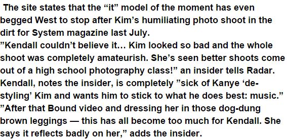 Kim K’s sister, Kendall Jenner has come forward to point the finger at Kanye West for all the vapid style decisions her sister has been making since they started dating. As per RadarOnline, the youthful model thinks Kanye is making one major fashion socially awkward act for insisting on styling Kim!