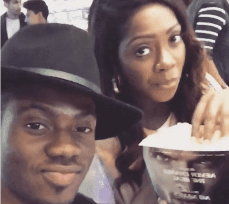 #Godwin# crooner Korede Bello was seen in London hanging out with his label mate Tiwa Savage. They went out to see a movie. Nice outing.