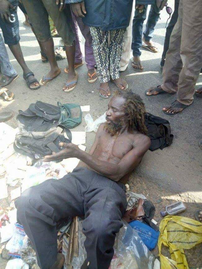 Man allegedly pretending to be mentally challenged, apprehended in Ogun State, where he gathers and sells used baby diapers to buyers.