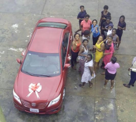 Home / News From Nigeria / Breaking News / Photo: Man presents a car to his girl at Moremi Hall, UNILAG just for ‘Saying Yes’
