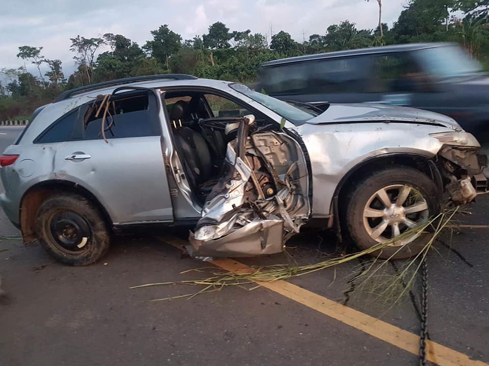Who is that person that say there is no God? If not God, what could have save me and my 3 friends from this kind of treble and dangerous accident. I try to to keep this marvelous work of God to myself but I couldn’t. It all happened like a movie to me. I was driving from village to Lagos on my way reaching towards ORE my car tumbled 3 times and landed inside a tick forest with the 4 tires of my fx 35 Infiniti on the air ( off side down).