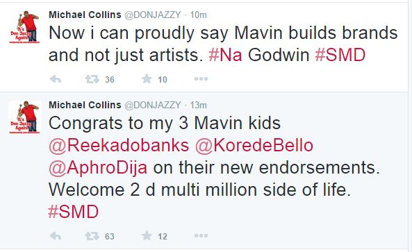 Tagged with: Di'Ja Don jazzy Korede Bello Reekado Banks