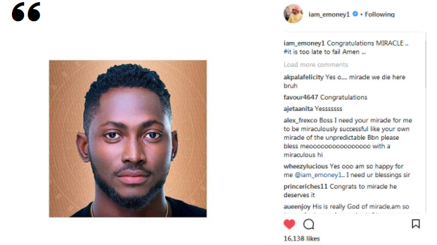 #bbnaija: E-money Reacts As Miracle Emerges Winner