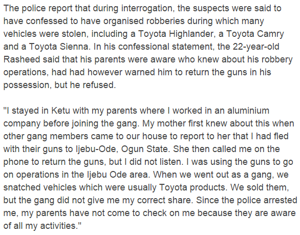 An associated pioneer with an equipped theft pack, Mutiu Rasheed, stunned men of the Lagos State Police Command, Ikeja, when he admitted that his guardians were mindful that he was a armed rubber and implicitly provided for him their backing.