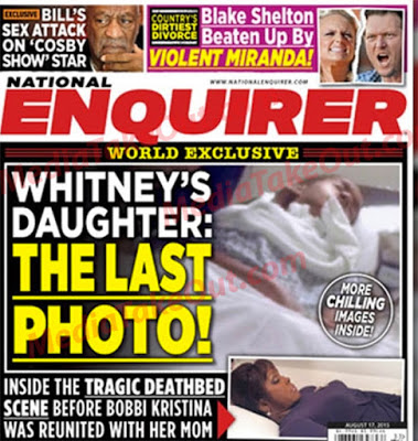 TMZ said a relative was shopping the photograph and they were correct. The photograph was sold to National Enquirer and they released it on their cover today. This photograph is Bobbi Kristina in her healing facility bed before she kicked the bucket.