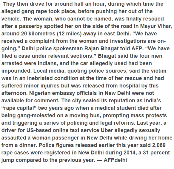 Home / News From Nigeria / Breaking News / Nigerian Ladies Gang-molested In a Moving Car In New Delhi, India