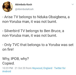 This virtually explains everything, you attacked Tinubu’s TV station while leaving others, also attacked the Oba’s house. That is more political a movement than sharing the same agitation. Attacking the little infrastructure we have in Lagos simply means we are not on the same page.