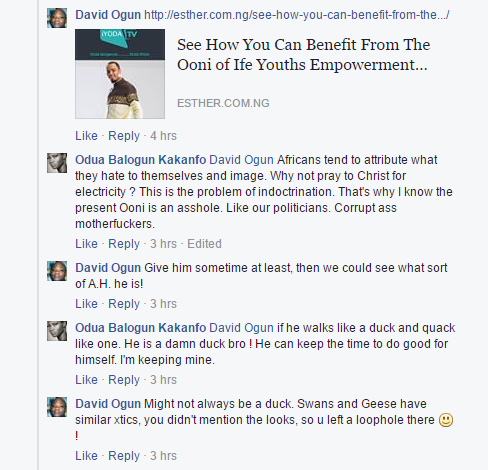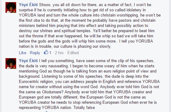 SEE ALSO: The Ooni of Ife Regarded as “Igbakeji Orisa”, disowns Orunmila, other Irunmoles (An Abomination ?)