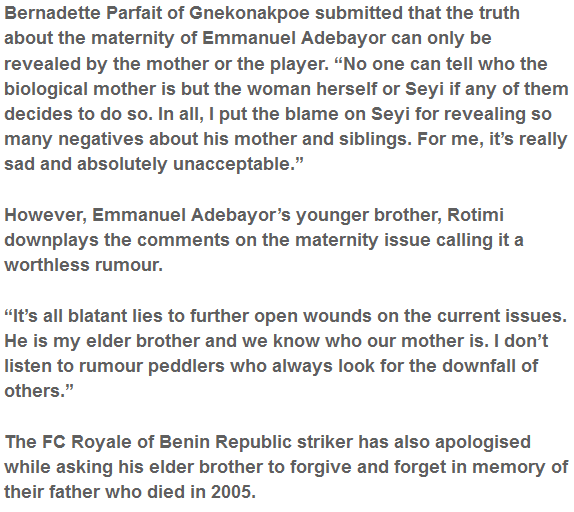 Sunday Sun additionally went over Samuel Kokou in Adjololo which is closer to Didjole where Emmanuel Adebayor owns one of his homes. Kokou expressed that Hajia Adebayor couldn’t have been disfavored by the football star on the off chance that she is his natural mother.