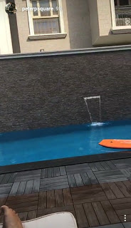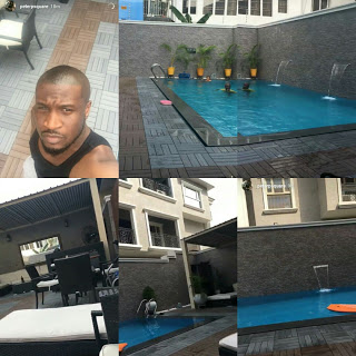 We broke the news last year about Peter Okoye’s new exquisite mansion and the singer has since been sharing photos of different parts of the magnificent edifice. Peter took to social media days ago to show off the huge poolside that gets constantly filled up from a fountain built into the fence of the house.