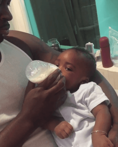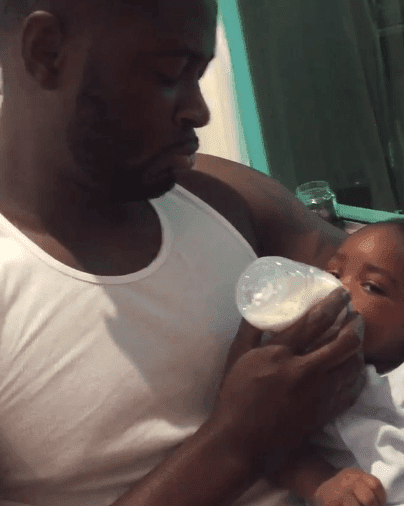 Photos of Tiwa Savage’s Teebillz feeding their son,