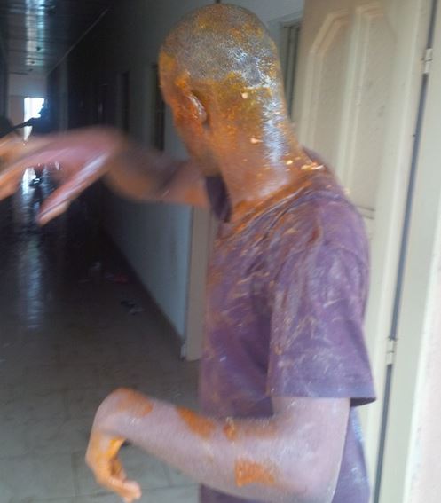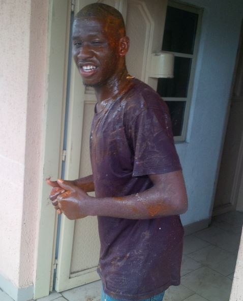 Some ladies sha… But wait oh, what is that all over him, soup or sh*t ? See more pics bellow.