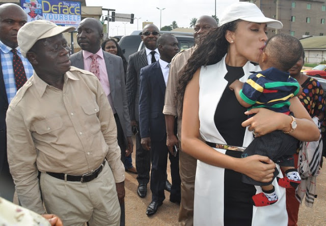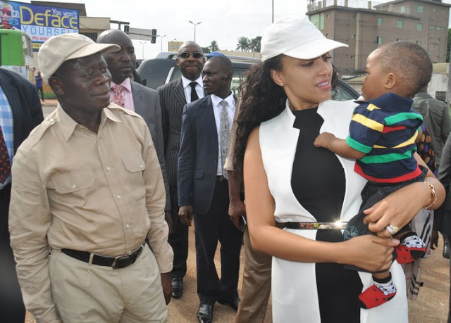 Edo state Governor ,Adams Oshiomhole, and his wife Iara Oshiomhole, pictured amid the inspecting of the 2nd East Circular street in Benin City, yesterday June 5.