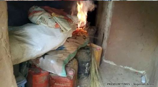 The armed force said things found in addition to the IED making equipment, were a Peugeot pick up van, foodstuff, 10-KVA Lister generator, gas chambers, borehole, 9 packs of fertiliser, pumping machine, 3 sacks of maize, 1 sack of millet and 13 empty AGO jerry cans, amongst others.