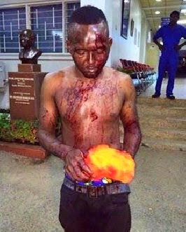 A Ghanaian event promoter, Kinto Rothmans (presented above) was mercilessly thrashed by an irate crowd yesterday after he was blamed for being gay. The video has circulated around the web now in Ghana and it demonstrates Kinto being brutalized for professedly having a gay relationship with one Salim. You will see him all bleeding in the video saying “I need chop Salim” when he was asked “You need do what?”. Extremely aggravating. Once more, a few reports say he was even set up.