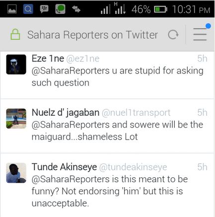 Posted by: Lolade in Breaking News, Metro lifeComments Off on Pro GEJ trolls tackle Sahara Reporters after This Epic tweet !