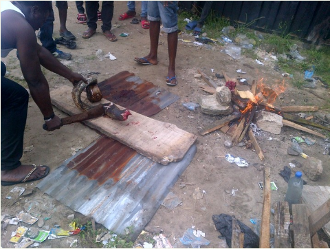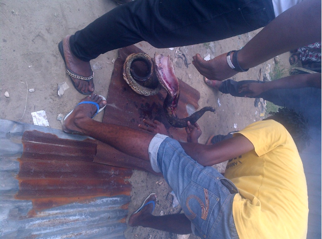 Python Killed And Roasted In Okumagba, Warri (Photos)