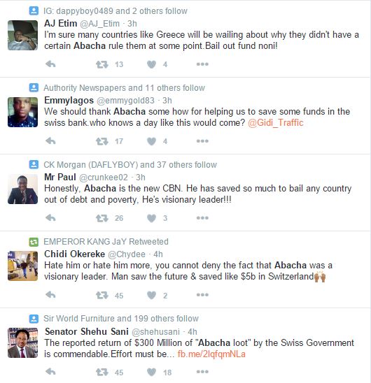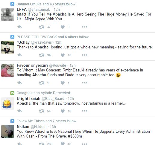 abacha is a celebrity for life oh. late micheal jackson is not making this much. Even after his death. Swiss bank na thief too