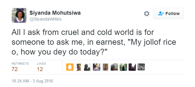 Siyanda Mohutsiwa, a Botswana-based writer posted some interesting tweets today. Sharing quotes from some popular Nigerian songs, Siyanda discussed her need to marry a Nigerian man. See them below….