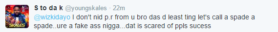 Home / News From Nigeria / Breaking News / Skales replies Wizkid, says he’s a ‘fake ass ni**a’, Wizkid responds