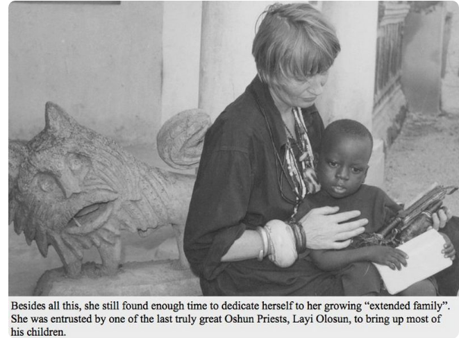 She adopted over 12 Yoruba kids and one of them is the well-known Yinka Davies-Okundaye, who is now one of the most renowned contemporary painters in Nigeria.She adopted Nike at the age of six when she became an orphan. Susanne Wenger then formed a cooperative society for the benefit of the community and to raise her many kids.