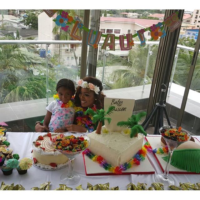 The heavily pregnant mother of one and half today celebrated her baby shower with an elegant party. The shower was Haiwaian themed and had stars Tiwa Savage,Jude Okoye’s wife Ify, Agbani Darego, Osas Ajibade, Veronica Odeka, Jumai Shaba and more in participation. Dazzling photographs of them at the gathering bellow.