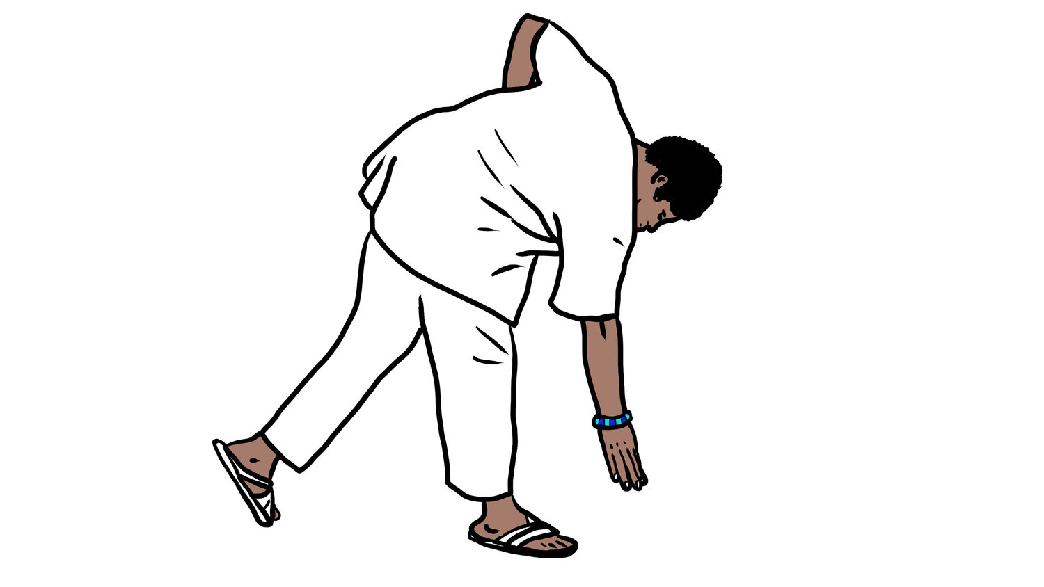 Yorùbá men prostrate to greet a senior member of the society. In the most expressive form this means to lie down completely, with the chest touching the floor. Only the head remains raised up in the air, the face looks towards the person you are greeting. Both hands are formed into one fist (see the “oṣùbà” gesture below) and held directly under the chin. The elbows are tucked under the body and not stretched out to the sides. As one can remain in this position for the following communication you should make yourself feel comfortable here. Just for a short moment, to lower yourself even more, one can stretch out the arms close to the body and put the head and the face down to the floor. This is often seen among Olórìṣà in the Diaspora, in Yorùbáland it is performed only if the reason for the encounter is severe. It is very common not to lie down completely, so that weight still rests on the bent or the stretched arms, enabling the man to keep his upper torso and the head in an almost upward position. Today this can even be shortened, depending on the social setting. Men can “dọ̀bálẹ̀” into a kind of push-up position, where the body doesn’t touch the floor at all, so just the hands and feet get dirty. Instead of prostrating they can bow down their upper body and touch the floor with the right hand, or at least stretch the right hand in the direction of the floor, while the left arm is usually bent and held at the back. The minimum variant, e.g. among friends or close colleagues, is to bow down a little bit and lower the head, called “tẹrígbà”, in the dictionary translated with “to lower the head (to receive a blessing)”.