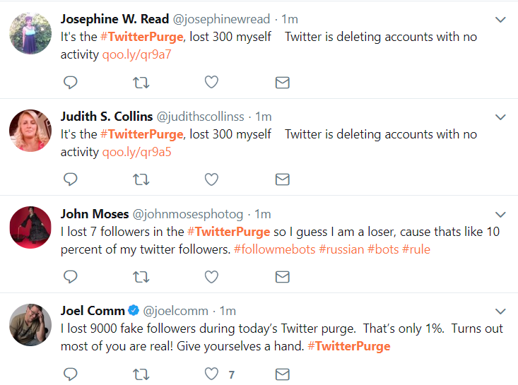 There is a Twitter Purger going on at this time while the social network site begins deleting over 70 million (fake, dormant, Inactive, spam, bots) accounts as announced by its CEO, Jack Dorsey.
