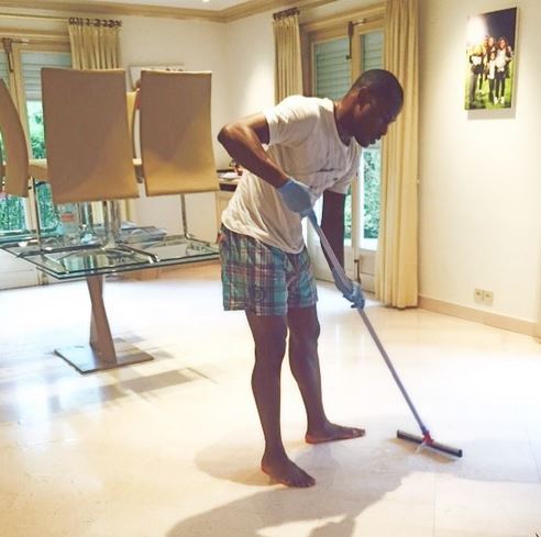 “When your house keeper is on vacation and wifey is given a free weekend#lavieestbelleavecma #grateful #blessed #I take laws into my hands. guys lets show the women what we can do”.