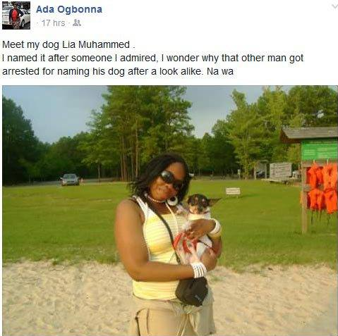 Facebook user, Ada Ogbonna shared this on her wall some hours ago. She says she named the dog after someone she admires.