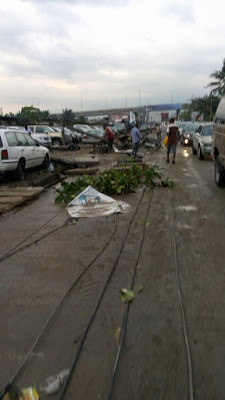 According to a Facebook user, Christian Mfon Jornsen, the first rain of the year in Port Harcourt, wrecked havoc to properties. Mr. Jornsen shared the photos on his Facebook page with the status update;