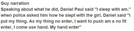 26 year old Daniel Paul from Akwa Ibom was captured in Benin for defiling one and a half year old girl. As per reports, Daniel, who lives in the same compound with the girl, tricked her into his room, turned up the volume of the music in his room to lessen the child’s cries. He then continued to sexually attack the young lady. After he let the young girl go, her mom, who was selling outside the compound, saw her daughter crying in anguish when she wanted to pee. At the point when the mother saw blood around her child’s private part, she called the police & Daniel was captured after which he admitted. What he said is chilling