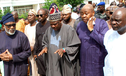 Though, the result of the autopsy carried out by the LAUTECH medical experts to ascertain the cause of the lawmaker’s death remains cloudy as it was yet to be released to the public. It was however learned that the result would only be made known to the family members whenever it is ready. The late politician, after Islamic prayers by an array of clerics was buried before noon. In his brief sermon, the Chief Imam Of Ansaru- deen Mosque, Ede, Sheik Adekilekun, admonished those still living to be upright in their deeds and always have it at the back of their minds that, death could come any time. He described late Adeleke as a lover of all while alive and urged politicians to emulate his political philosophies. Dignitaries present at the burial include Governors of Ogun State, Senator Ibikunle Amosun; Ekiti, Ayodele Fayose; Ondo, Rotimi Akeredolu and his predecessor, Dr. Olusegun Mimiko. However, no member of the Osun State executive council was present for the burial.