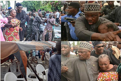 The angry youths said Babalola was being touted to become the running mate of the anointed candidate of the party. Trouble started when Babalola was sighted by the mourners, who demanded that she should be sent out. An appeal from family members of the deceased, however, fell on deaf ears as the youths insisted, shouting and raining curses on her. The youths started shaking the canopy where Governors Amosun, Akeredolu, Prince Oyinlola and Deji Adeleke were seated to chase out Babalola who they described as a betrayer. Babalola was escorted outside the house by Amosun and his security aides as the youths threw sticks and mango fruits at her.