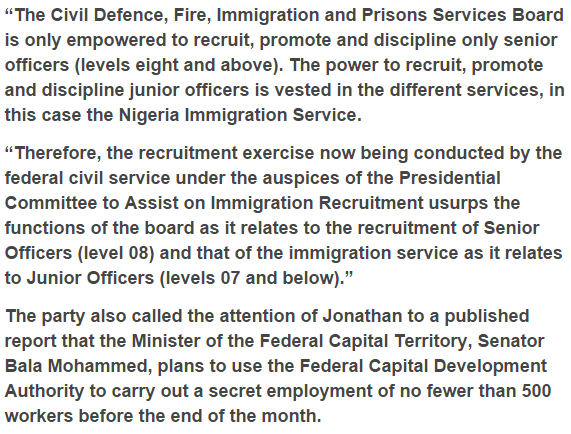 It said separated from media reports of such peculiarities, the party had gotten dependable data from individuals from general society about a few questionable activities by key authorities of the cordial Jonathan administration.