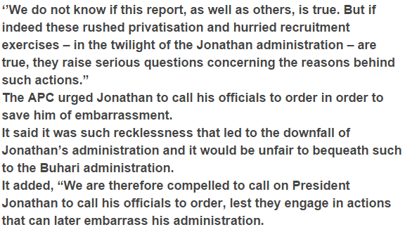 It said separated from media reports of such peculiarities, the party had gotten dependable data from individuals from general society about a few questionable activities by key authorities of the cordial Jonathan administration.