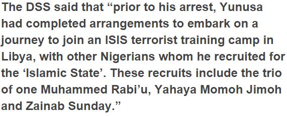 The Department of State Service on Tuesday announced the capture of a 400-level understudy of Federal University of Technology, Minna, for being the operational arrowhead of the Islamic State of Iraq and Syria (ISIS) in Nigeria. Abdussalam Enesi Yunusa, studying Information and Media Technology, was captured in Kano. His capture was continuation of accessible insight which demonstrated his terrorist precursors and clandestine drive to influence and enroll defenseless young people in the nation, Tony Opuiyo said in statement on benefit of DSS.