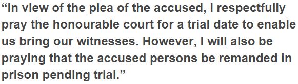 He requested that the court remand all the charged in EFCC care with the goal that they could have simple access to treatment and lawyers.