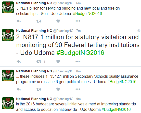 The Minister of Budget and National Planning, Udoma Udo Udoma, has exhibited points of interest of the N6.06 trillion 2016 spending plan. Here is the breakdown as shared on the services twitter handle. See more bellow.