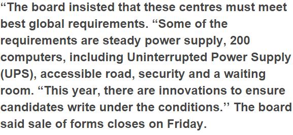 The dates for the 2016 Unified Tertiary Matriculation Examination was revealed by the Joint Admissions and Matriculation Board, yesterday. The Joint Admissions and Matriculation Board (JAMB) on Tuesday, January 26, said it would conduct the 2016 Unified Tertiary Matriculation Examination (UTME) in the middle of February and March. As per statement by its Head of Media and Information, Dr Fabian Benjamin in Lagos, the Computer-Based Test (CBT) exam would hold in more than 400 centres in and outside Nigeria. He included: “JAMB has affirmed more centres to give Nigerians the best computer based test.
